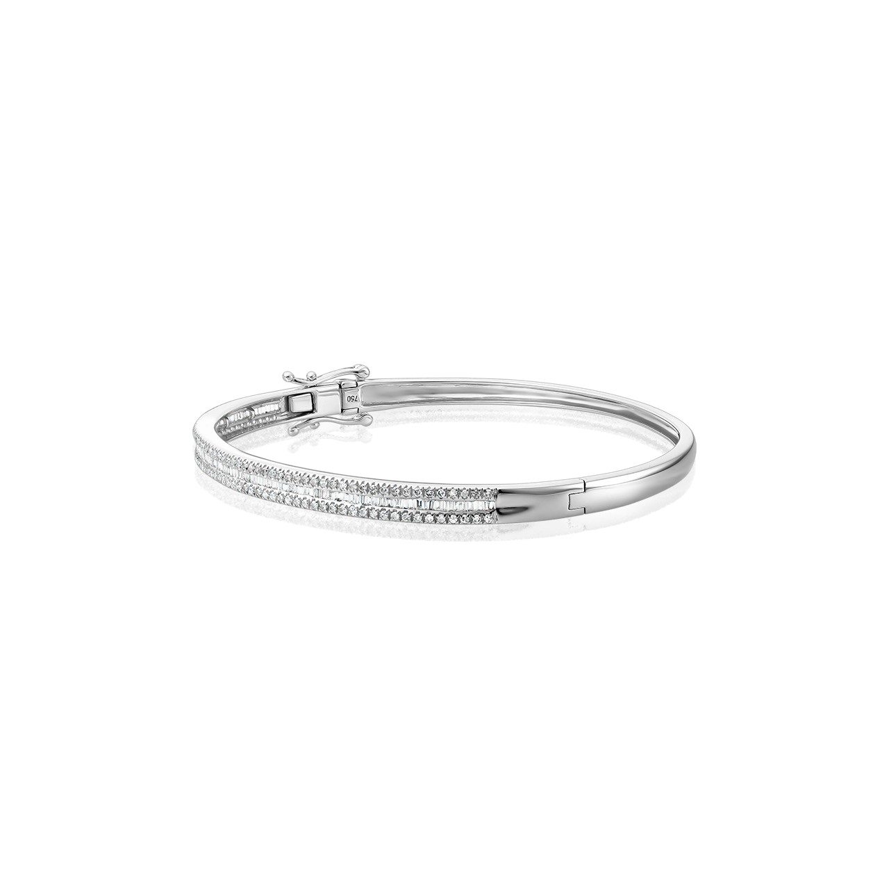 Bratara fixa „Bangle” din aur alb de 18 karate cu 156 diamante round cut de 0.43 carate si 118 diamante baguette de 0.46 carate