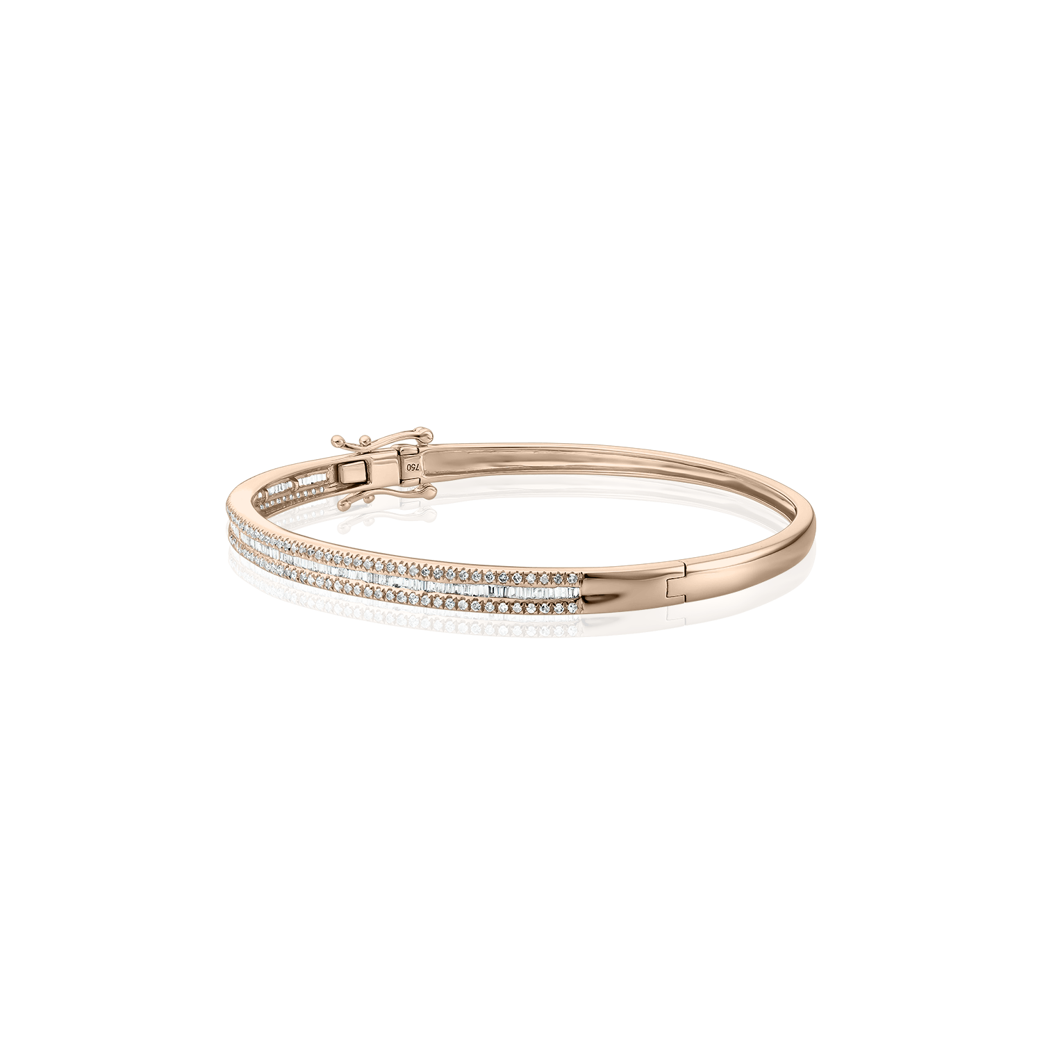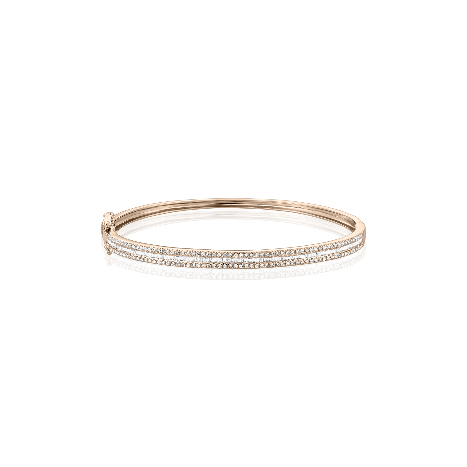 Bratara fixa „Bangle” din aur roz de 18 karate cu 156 diamante round cut de 0.43 carate si 119 diamante baguette de 0.44 carate