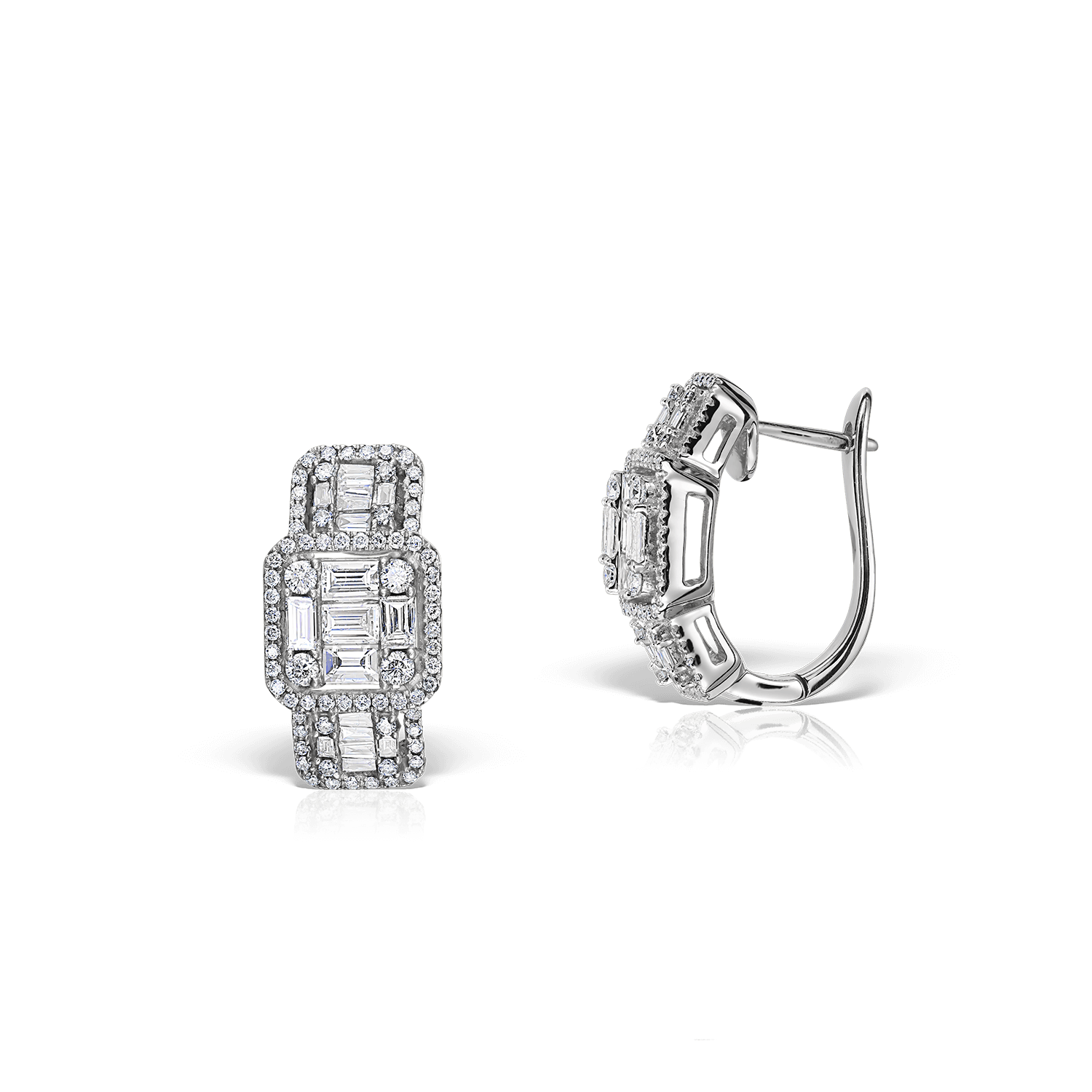 Cercei din Aur Alb de 18 Karate cu 34 Diamante Baguette Cut de 1.25 Carate si 144 Diamante Round Cut de 0.67 Carate