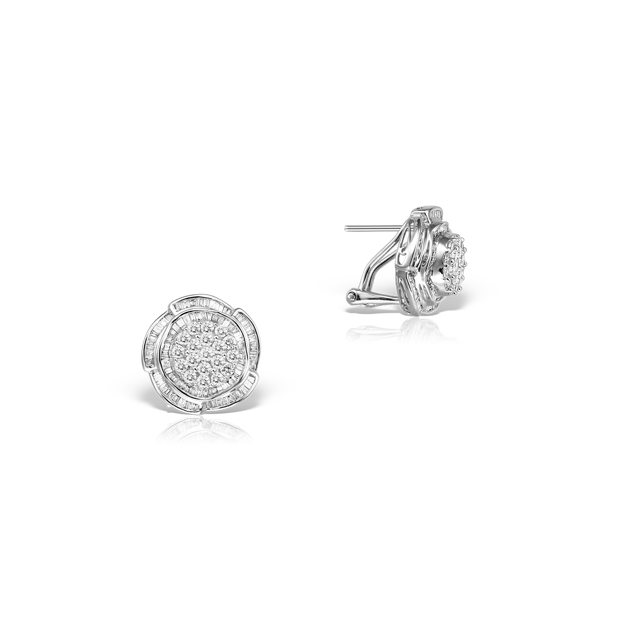 Cercei cu Clips „Dinasty” din aur alb de 18 karate, diamante round cut de 0.72 carate si diamante baguette de 0.64 carate