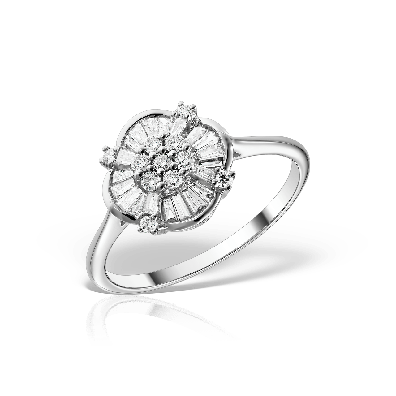 Inel din aur alb de 18 karate cu 20 Diamante Bagheta de 0.21 CT si 11 Diamante Rotunde de 0.14 CT.
