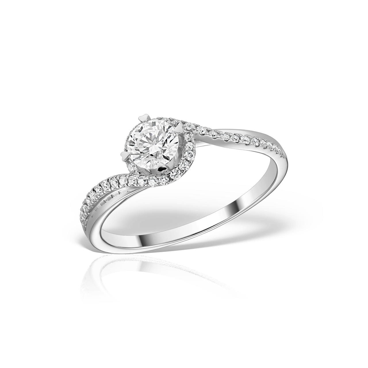 Inel de logodna Solitaire din aur alb de 18 karate cu 1 diamant briliant cut de 0.36 carate si 38 diamante rotunde de 0.14 carate